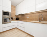 Celý byt je vybaven krásným vkusným nábytkem vyrobeným na míru a ten je také součástí prodeje. Kuchyňská linka je zařízená vestavěnými spotřebiči – horkovzdušná a mikrovlnná trouba, lednice, mrazák, rychlovarná deska a digestoř.
