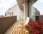 Lodžie o výměře 7,7 m2 je po celé šířce obytného prostoru. Velkými okny proniká do bytu dostatek světla a pokoje působí vzdušně a čistě. Venkovní prostor je dostatečně široký k umístění venkovního nábytku a klidnému odpočinku s výhledem. V okně je praktická síť proti hmyzu.