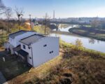 Dům stojí přímo na hrázi řeky Moravy a nabízí působivý výhled na vodní hladinu i okolní zeleň. Stačí projít brankou v plotě a během pár kroků jste u vody – ideální místo pro rybaření, relax nebo ranní kávu s výhledem na řeku. Příjezd k domu zajišťuje soukromá komunikace ze zámkové dlažby, kterou využívají pouze majitelé okolních nemovitostí. Lokalita poskytuje naprostý klid a soukromí, přitom jste jen několik minut od centra města.